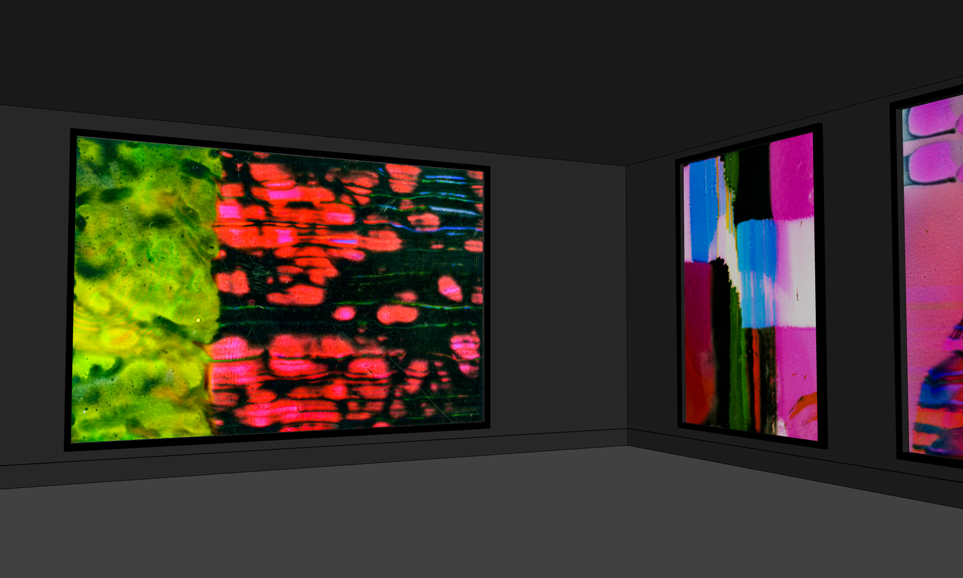 canned images of improperly printed corrupted photographs covered in dust, paint, and fingerprints